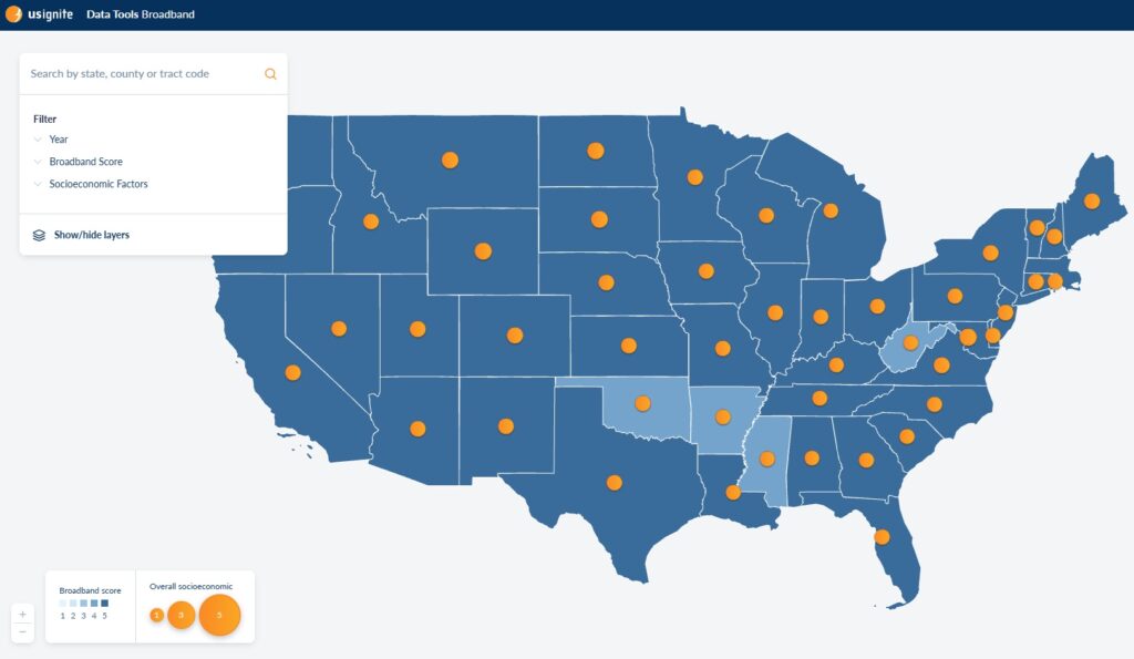 To help decision makers determine how much the expansion of broadband access supports economic prosperity in communities across the United States, US Ignite created the National Broadband Impact Tool. This interactive tool provides: